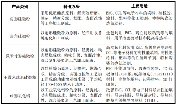 联瑞新材产品属于新材料行业。其以硅基氧化物填料、铝基氧化物球形填料为核心产品的功能性陶瓷粉体填料,具有技术新、工艺新、应用新、测试条件复杂且更新快等特点,属于新型的跨领域、跨学科、跨专业的尖端机能材料。产品应用于电子电路基板、芯片封装材料、新型绝缘制品、导热界面材料、胶粘剂、蜂窝陶瓷、3D打印、齿科材料等行业,服务于5G装备、消费电子、汽车工业、航空航天、特高压传输、增材制造、齿科健康等领域。