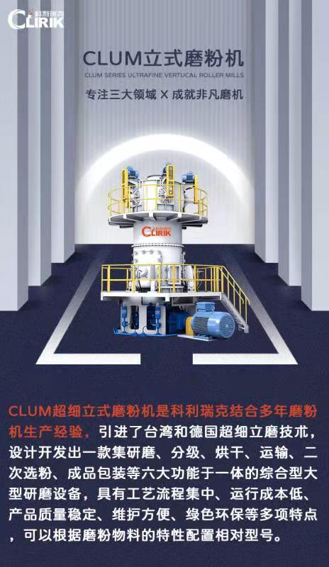 CLUM 系列超微细粉体立式滚轮研磨机是上海科利瑞克机器有限公司以十二年生产超细粉体经验为依托,吸收德国、台湾超细立磨技 术,并采用优质的耐磨件,研发出中国国内真正意义上 拥有二次分级技术的磨粉设备。该设备由国内团队把控,立磨生产的成品细度可达到 400~6000 目。