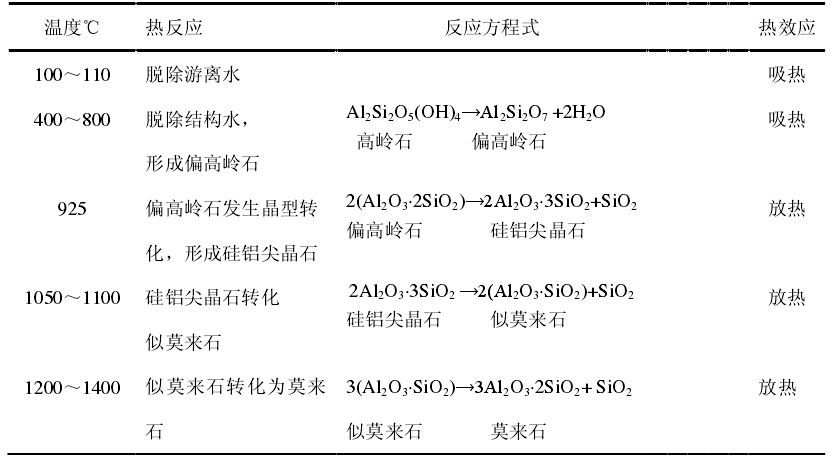 高岭土在加热过程中会发生脱水、分解、析出新物相等物化变化,较为复杂,一般认为,高岭土在加热过程主要包括两个阶段:脱水阶段和脱水后产物的转化阶段。
