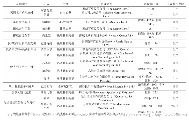 王九一.全球高纯石英原料矿的资源分布与开发现状