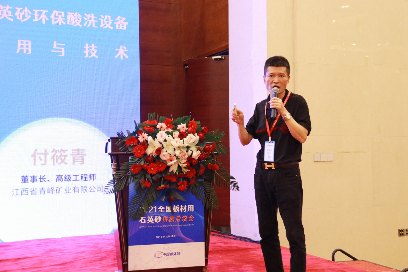 江西青峰矿业有限公司付筱青董事长作《石英砂环保酸洗设备应用与技术》报告