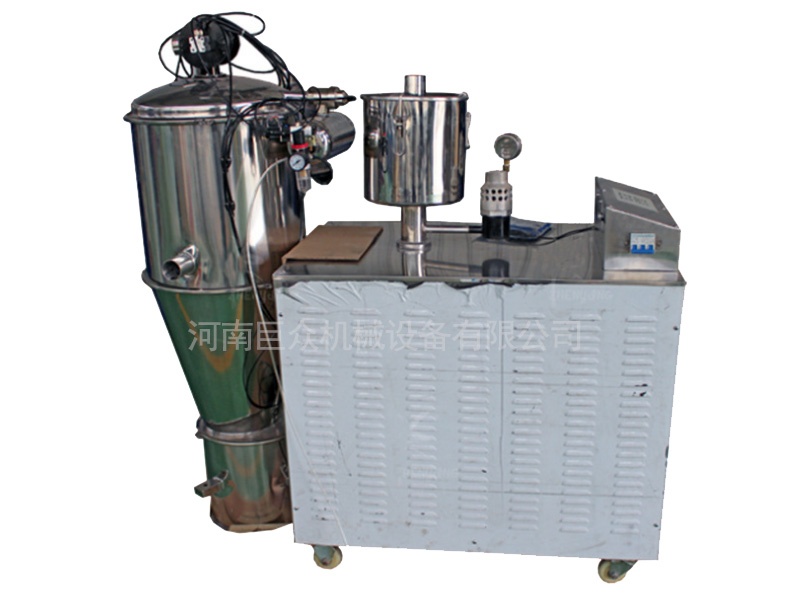 真空加料机是利用电动真空泵作为真空源的一种真空输送机,利用该真空加料机可以将物料从容器中直接送入混合机、反应器、料斗、压片机、包装机、振动筛、整粒机、湿法制粒机、干法制粒机和粉碎机中去。该机减轻了工人的劳动强度,解决了粉尘污染,保证生产符合“GMP”要求。
