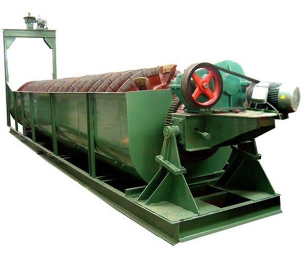螺旋分级机是选矿的设备之一,螺旋分级机借助固体颗粒的比重不同,因而在液体中沉淀的速度不同的原理,进行机械分级的一种设备。能把磨机内磨出的料粉级于过滤,然后把粗料利用螺旋片旋片旋入磨机进料口,把过滤出的细料从溢流管子排出。螺旋分级机简称分级机。 分级机主要有高堰式单螺旋和双螺旋、沉没式单螺旋和双螺旋四种分级机。分级机主要由传动装置、螺旋体、槽体、升降机构、下部支座(轴瓦)和排矿阀组成。螺旋分级机广泛适用于选矿厂中与球磨机配成闭路循环程分程分流矿沙,或用在重力选矿厂中来分级矿砂和细泥,及金属选矿流程中对矿浆进行粒度分级,及洗矿作业中的脱泥、脱水等作业。