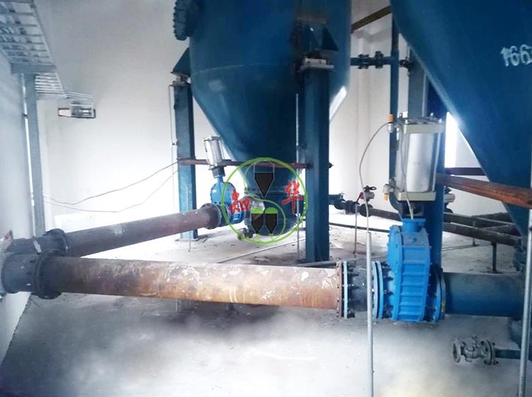 湖州兴浦南方水泥有限公司拥有年产360万t/年水泥粉磨生产线,同时拥有自己的内河码头,通过散装船运来的矿粉通过气力输送泵、管道输送至水泥厂内的矿粉库,通过知华设计,整个输送过程中实现了矿粉计量功能,计量精度3‰~5‰。该项目输送水平距离210m,输送高度45m,输送量150t/h。