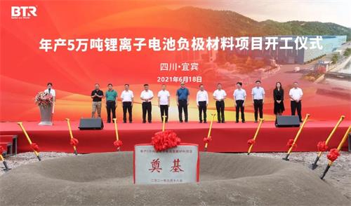 中国粉体网讯 6月18日上午11点18分,贝特瑞集团全资子公司贝特瑞(四川)新材料科技有限公司举行年产5万吨锂离子电池负极材料一期项目开工奠基仪式。