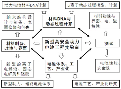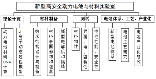 本实验室中长期目标,是研究开发高能量密度高安全动力电池新材料、新体系,综合解决锂离子动力电池所面临的安全性能和能量密度问题,开发出以锂硫电池为代表的,具有更高安全性、高能量密度的全新材料体系和电池设计体系。