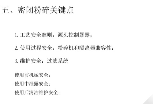 第二个是共性问题,粉碎工艺是最容易产尘的工艺步骤,密闭粉碎解决方案是当前最迫切的需求。目前国内大多数制药企业,粉碎投料多是暴露环境下的投料,用塑料袋收料,不能完全密封,尤其是折叠位置容易泄露,漏一点缝隙就会冒粉尘。对于有毒有活性产品来说,粉碎工艺的密闭性就显得尤为重要。