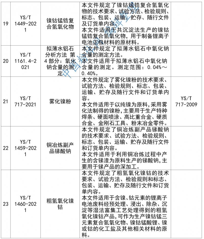 中国粉体网讯 近日,工信部网站发布公告称,根据行业标准及国家标准制修订计划,相关标准化技术组织已完成《导电胶粘剂》等52项化工行业标准、《汽车安全带卷簧用热轧钢带》等20项冶金行业标准、《电磁屏蔽用压延铜箔》等134项有色金属行业标准、《钐镁合金》等6项稀土行业标准、《秸秆复合墙板》等16项建材行业标准等及《道路车辆 网联车辆方法论 第1部分:通用信息》等6项国家标准的制修订工作;《铁矿石 适运水分极限测定方法 插入度法》等2项冶金行业标准外文版、《锂辉石精矿》等3项有色金属行业标准外文版、《粗金》等3项黄金行业标准外文版、《泡沫玻璃绝热制品》等2项建材行业标准外文版的编制工作。在以上标准发布之前,为进一步听取社会各界意见,现予以公示,截止日期2021年8月20日。
