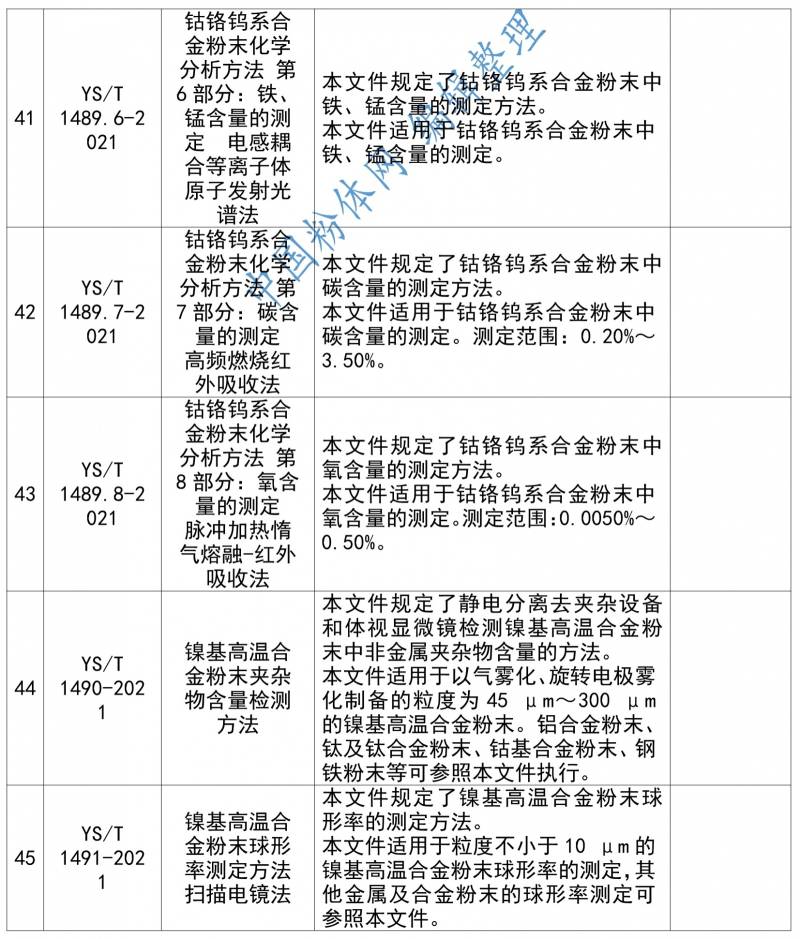 中国粉体网编辑整理了粉体领域相关的50多项行业标准,包括:新能源电池用粉体材料、稀土粉体材料、先进金属粉体材料、粉末冶金材料、矿物功能粉体材料等,具体如下: