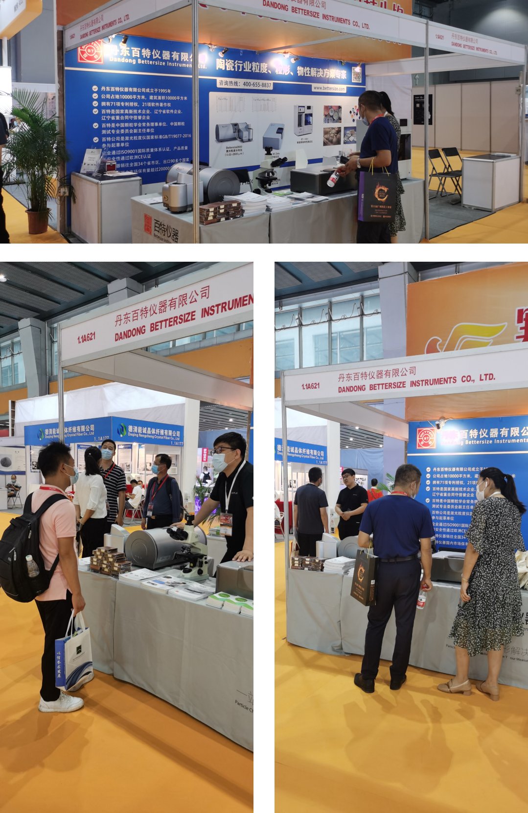丹东百特此次参展现场展示的Bettersize2600激光粒度分布仪、BT-1001智能粉体特性测试仪、BT-1600图像颗粒分析仪可准确快速地测量陶瓷粉体中的颗粒数量及形貌,为陶瓷行业企业提供粒度、粒形、物性指标等一站式解决方案,由此吸引了众多观众前来展位交流洽谈。