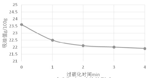 同时二次碳化对新生成的CaCO3颗粒进行表面修整,使其平滑光亮,表面能降低,不仅可以降低产品的吸油值,而且能有效阻止颗粒之间发生团聚。在实际生产中,根据返碱量,二次碳化时间一般控制为1~2 min。