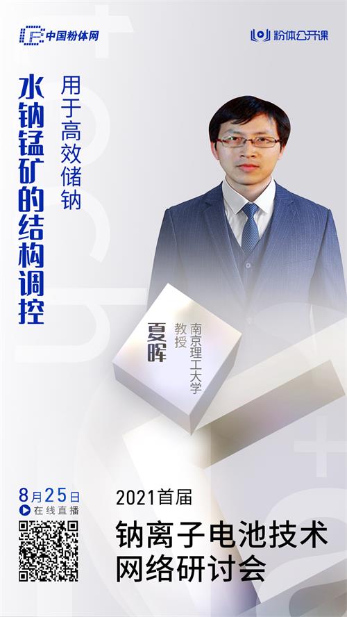 为深入了解水钠锰矿材料的研究,有利于进一步设计开发性能优异的钠离子电池关键电极材料,并构建高稳定、长寿命的钠离子电池,为钠离子电池在储能领域的规模应用提供研究基础和技术支撑,中国粉体网旗下粉体公开课平台将于2021年8月25日举办“2021首届钠离子电池技术网络研讨会”,届时来自南京理工大学的夏晖教授将作《水钠锰矿的结构调控用于高效储钠》报告,本报告以尖晶石结构Mn3O4为前驱体材料,通过电化学转化以及化学转化,实现尖晶石到水钠锰矿的结构转变,通过Na含量、层间结晶水调控,以及新构型多面体的构建,获得新型高Na含量的水钠锰矿电极材料,在水系钠离子电容器和有机系钠离子电池中获得优异的储钠性能。为高性能、低成本钠离子电池电极材料的开发提供了新思路。