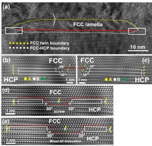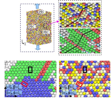 实验室与澳大利亚悉尼大学及美国Nebraska-Lincoln大学合作,以Ti、Zr、Hf为例,确定了应力诱发HCP→FCC马氏体相变的两种机制。首次从原子尺度阐明了基面型相变的不全位错机制,将科学界对相变机制的理解向原子尺度推进一步;首次阐明了柱面型相变机制必须通过原子的“纯迁动”和“剪切?迁动”机制实现,解决了国际研究者在该问题上长期存在的分歧。