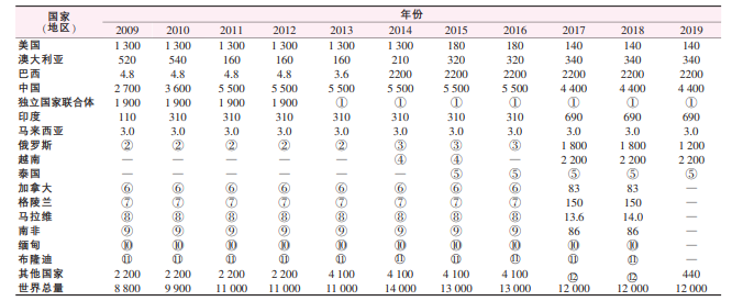 ▲2009—2019年世界主要国家(地区)稀土资源储量概况