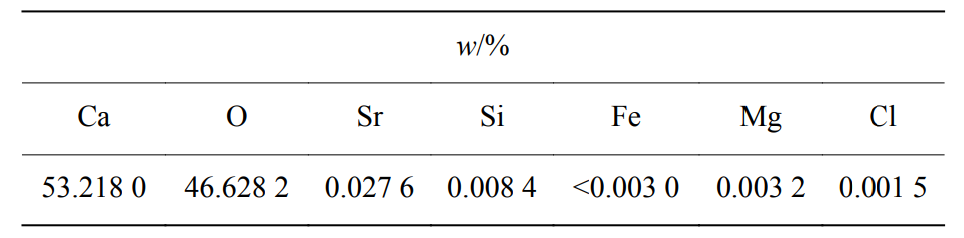 如表1所示,碳酸钙的纯度达到了99.86%,镁、铁质量分数低于0.005%,锰、铝等其他金属元素均没有检测出来。