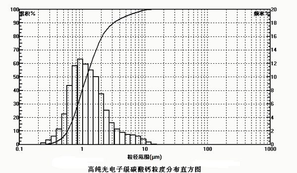 高纯光电子级碳酸钙粒径分布直方图 图片来源:创新世纪光电材料