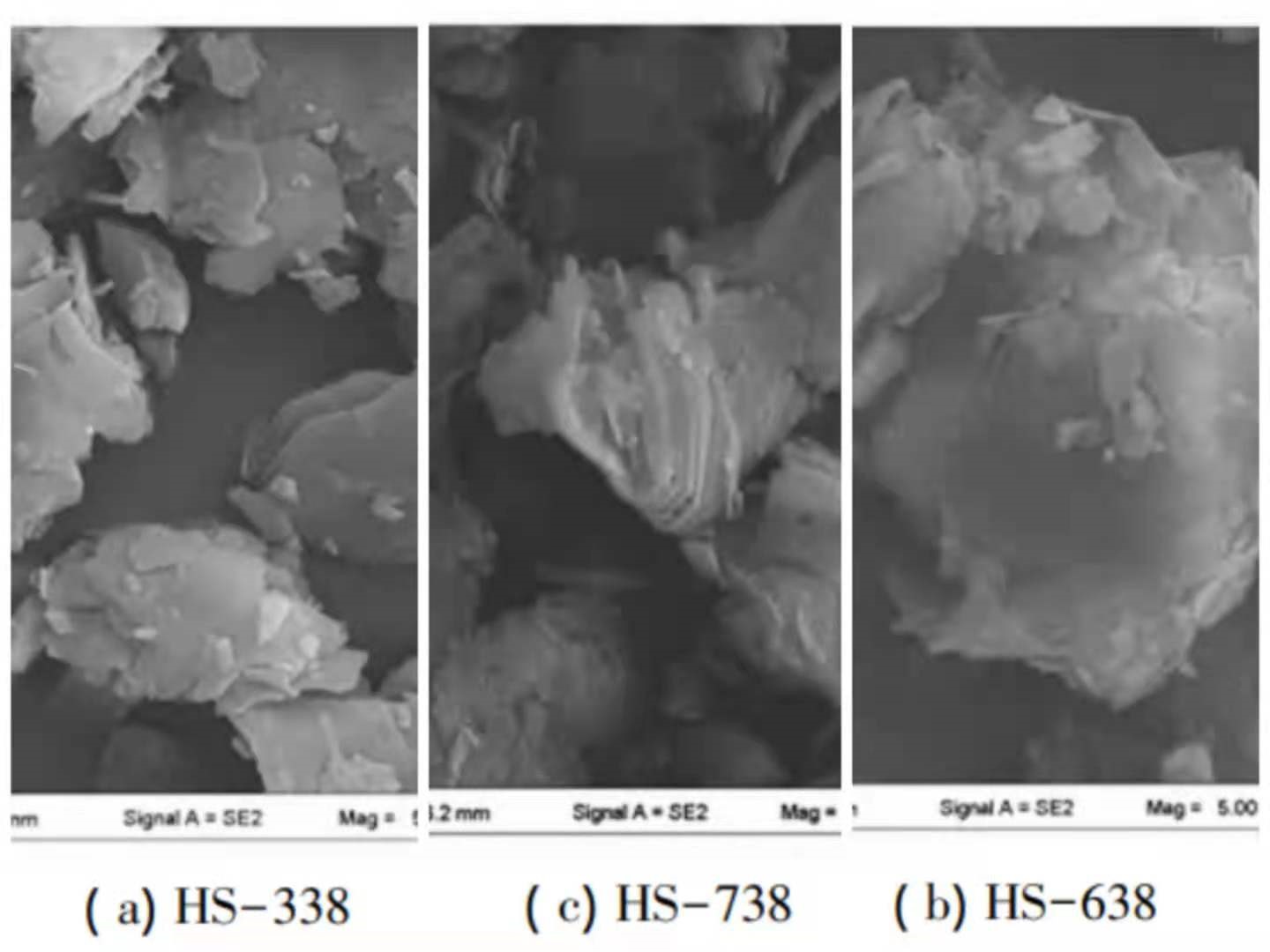 图2为三种滑石的粒径分布,从图2可知HS-738的粒度分布是最窄的,大部分颗粒集中分布在2-10μm之间。