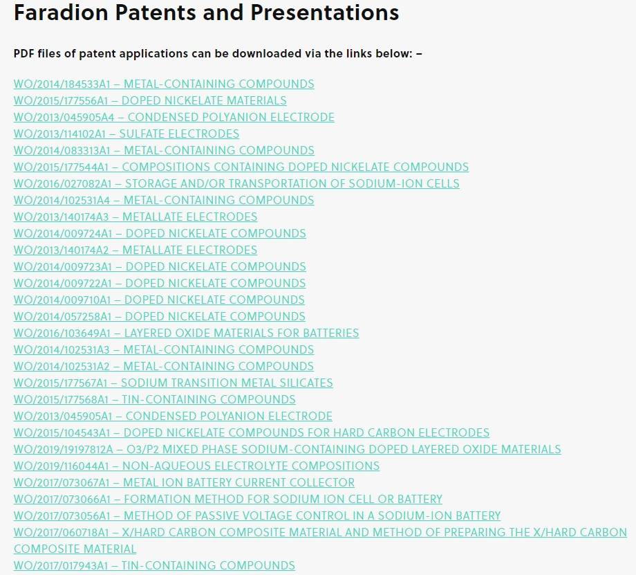Faradion于2011年由Jerry Barker博士、Chris Wright博士和Ashwin Kumaraswamy创立,旨在开发钠离子技术并将其推向市场。Faradion发展出了一个战略性的、广泛的和延展性的知识产权组合,包括涵盖钠离子技术的总共21个专利家族。与研究水系钠离子电池的Natron Energy不同,Faradion研发的是有机液体电解质的钠离子电池。与其他竞争的钠离子电池公司相比,Faradion在钠电池方面拥有更多的专利,可以巩固其作为非水系液钠离子电池市场领导者的地位。