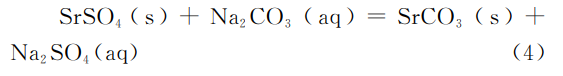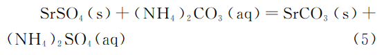反应原理:在反应器中加入天青石矿粉和过量碳酸铵溶液,发生如式(5)所示的复分解反应,待反应完成后过滤洗涤干燥得到碳酸锶产品。滤液中含有较高浓度的硫酸铵,通过冷却结晶回收,剩余含有少量碳酸铵的滤液循环利用。本工艺所得碳酸锶中所包含的少量碳酸铵,可通过干燥去除,从而得到较高纯度产品。