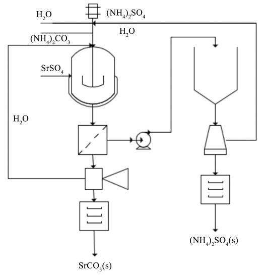 为了提高现行工艺产品质量,节约能源,刘建等人提出了一个新的工艺方法:用碳酸铵(代替纯碱)作为反应介质,与天青石矿反应制备高纯碳酸锶。