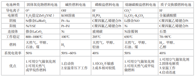 AFC和PAFC是早期的燃料电池,目前受到的关注程度较低;MCFC虽然表现出很好的稳定性,但是高成本限制了它的商业化发展;目前人们关注的热点主要是PEMFC和SOFC。