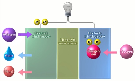 氧离子导体SOFC结构及原理图(来源:徐传伟.固体氧化物燃料电池及其产业化技术)