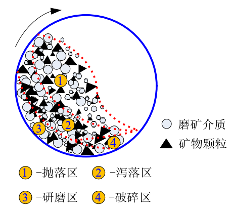 球磨机磨矿介质运动区域