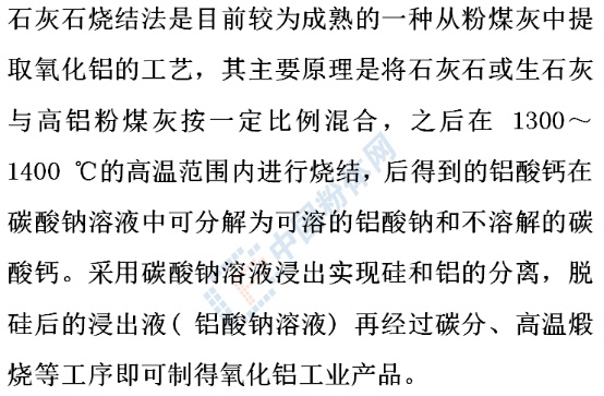目前,从粉煤灰中提取氧化铝的工艺主要有石灰石烧结法、浓碱溶出法、酸浸法、水热活化法等。