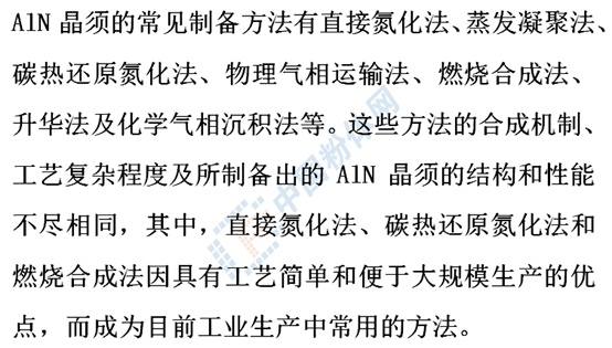 AlN陶瓷晶格中固溶的杂质原子,尤其是氧原子,对AlN的热导率具有极大影响,致使AlN多晶陶瓷的热导率远未达到理论热导率。晶须是一种引人注目的新兴材料,晶须是指具有一定长径比(一般大于10)和截面积小于50X10-5cm2的单晶状纤维材料。