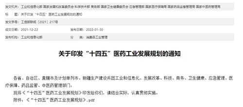 中国粉体网讯 2022年1月30日,中华人民共和国工业和信息化部发布关于印发“十四五”医药工业发展规划的通知。