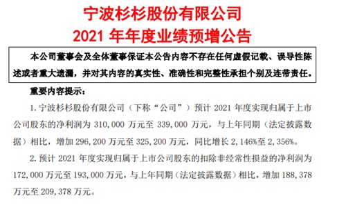 3、杉杉股份2021年净利同比预增逾21倍