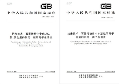 中国粉体网讯 近日,石墨烯领域的两项国家标准 GB/T41067-2021《纳米技术石墨烯粉体中硫、氟、氯、溴含量的测定燃烧离子色谱法》和GB/T41068-2021《纳米技术石墨烯粉体中水溶性阴离子含量的测定 离子色谱法》正式发布。这两项标准由北京市理化分析测试中心牵头制定,山西煤化所等多家企事业单位参与制定。