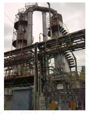 相较于国内,日本白石的连续喷雾碳化工艺已经相对成熟。喷雾碳化塔包含A塔(高15米,直径2.1米)和B塔(高18米,直径2.6米),二个塔循环碳化。塔底部通入CO2,浆液用泵从塔底通过管道从顶部喷入,下落入塔底,不断循环,直到中和至pH≤7停止。