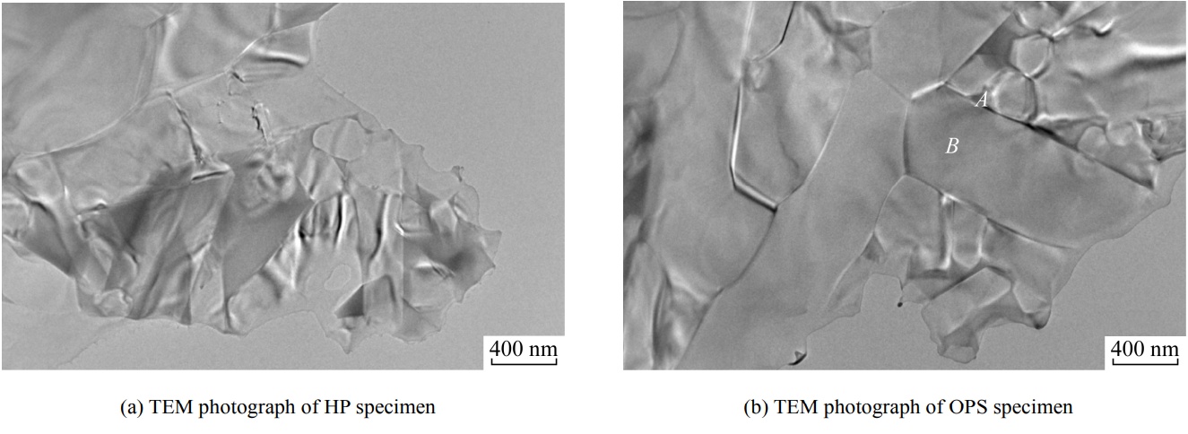 热压烧结(HP)与振荡压力烧结(OPS)TEM晶相对比(图片来源:韩耀等,《振荡压力对高性能氮化硅陶瓷烧结致密化的影响》)