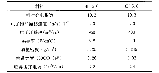 4H-SiC和6H-SiC的材料参数