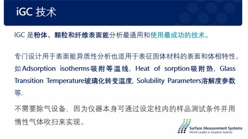 在电池材料的研发过程中,电池材料性能——热稳定性会引起材料的结构、物理化学、电化学等属性发生改变。尤其是备受看好的固态电池,从实验室规模扩大到工业生产,需要在电极中实现固态电解质、活性物质和碳的均匀分布。材料的表面能对保证材料之间的相容性至关重要,而反气相色谱法(IGC)是粉体、颗粒和纤维表面能分析最通用和使用最成功的技术。Surface Measurement Systems公司的石琳琳应用工程师给我们详细介绍了正极材料、负极材料的表面能案例,并介绍了公司的SMS iGC-SEA反气相色谱系统。