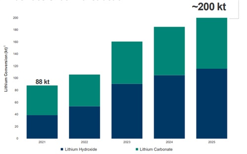 此外,该公司还官宣了为达到这一扩产目标的关键一步:在美国建立一家年产量10万吨的锂加工厂。据公司此前公布的资料,公司预计2025年锂产量可达到20万吨左右。