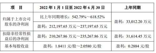 紫金矿业预计2022年半年度实现归属于母公司所有者的净利润约为126亿元,与上年同期相比将增加约60亿元,同比增加约91%。预计2022年半年度实现归属于母公司所有者的扣除非经常性损益的净利润约为119亿元,与上年同期相比将增加约58亿元,同比增加约95%。