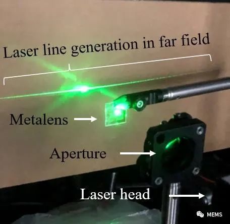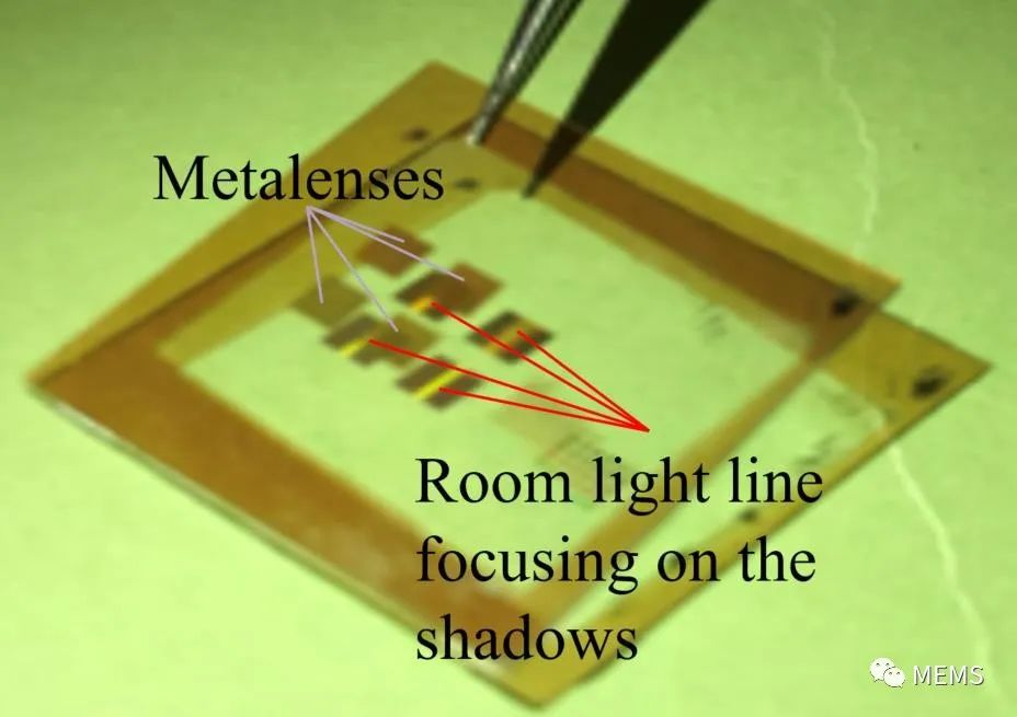 图2 室内灯光下所制造超构透镜的线聚焦演示