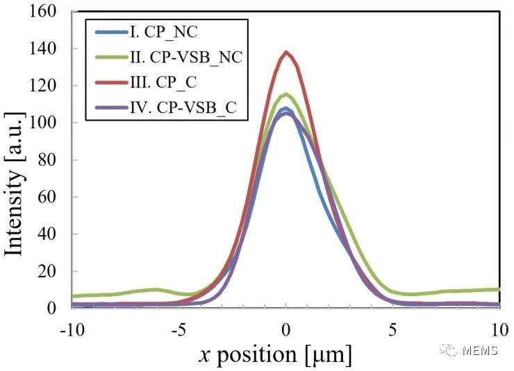 本论文的研究表明,精确设计的由c-Si制成的纳米柱可以应用于超构表面,并能取得令人满意的结果,即使在可见光波段。作者们设计了四种线聚焦超构表面透镜,以验证可见光波段的硅纳米柱超构透镜性能的有效性。此外,结合电子束光刻中的字符投影(CP)和可变形状束(VSB)模式,研究人员评估了批量生产和精度控制之间的兼容性。他们成功地获得了由单晶硅纳米柱构成的高效率线聚焦超构表面透镜。在532nm波长下,提出的超构表面透镜的参数如下:透镜厚度为300nm;焦距为3.91mm;方形光阑为2mm;数值孔径为0.25;实测透射率为38.4%~46.8%;焦点处测得的半峰全宽(FWHM)为3.68μm。