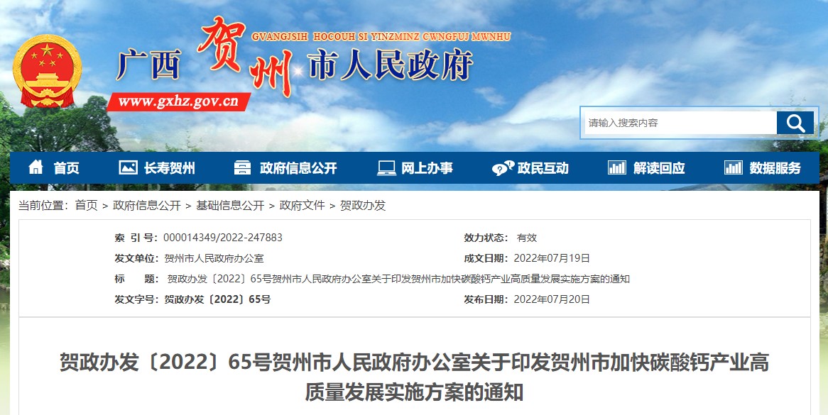 中国粉体网讯 2022年7月19日,贺州市人民政府办公室公开发布《贺州市加快碳酸钙产业高质量发展实施方案》(简称:《方案》)。关于新《方案》有哪些作用,如何实施?粉体网编辑大家一起了解,看一下贺州发展碳酸钙产业的智慧与魄力。