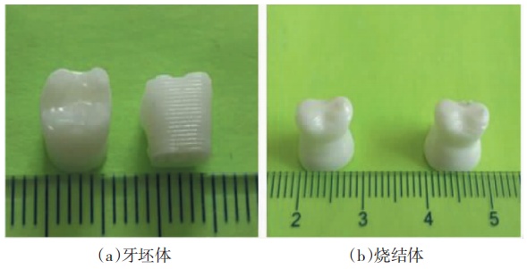 3D打印ZrO2陶瓷牙(图源:龚家宝等,《3D打印技术在生物医用陶瓷硬组织领域的研究进展》)