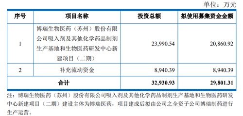 “博瑞生物医药(苏州)股份有限公司吸入剂及其他化学药品制剂生产基地和生物医药研发中心新建项目(二期)”有助于进一步扩充公司吸入制剂产能和丰富吸入制剂产品种类。同时通过本次募集资金投资项目建设,有助于发挥公司在高端仿制药领域的技术优势,促进研发成果产业化,有助于公司在自身高技术壁垒的医药中间体、原料药和制剂产品研制业务的基础上,逐步建立原料药与制剂一体的业务体系。