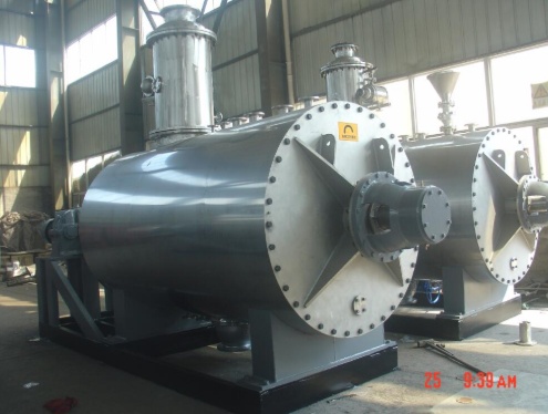 该机器广泛应用于各种粘度的CMC,制药,染料,轻工食品和热敏性材料,颜料等行业生产过程中的干燥,物料可以呈浆状,膏状,粒状,粉状,也可以纤维状半成品的干燥,物料从上口加入,在不断转动耙齿的搅拌下,物料随温度上升水分不断汽化的水分由真空泵及时抽出,达到干燥目的。