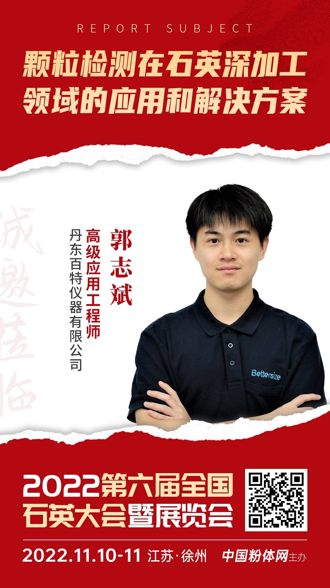 2022年11月10日至11日,中国粉体网将在江苏徐州举办“2022第六届全国石英大会暨展览会”。来自丹东百特仪器有限公司的高级应用工程师郭志斌将带来题为《颗粒检测在石英深加工领域的应用和解决方案》的报告。