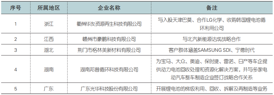 第一批符合新能源汽车废旧动力蓄电池综合利用行业规范条件企业名单(来源:梁展星等,《废旧动力电池回收利用技术与政策分析》)