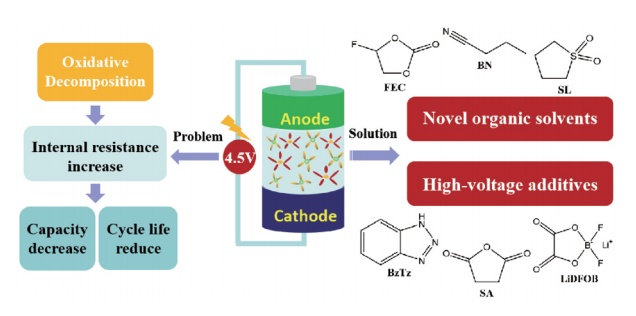 目前,研究较多的是通过使用高压材料来提高电解液的工作电压,包括使用高压溶剂、高压添加剂及高浓度锂盐电解液。