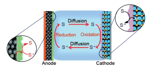 氧化还原穿梭剂过充保护机理示意图(来源:欧宇等,锂离子电池中的智能安全电解液研究进展)