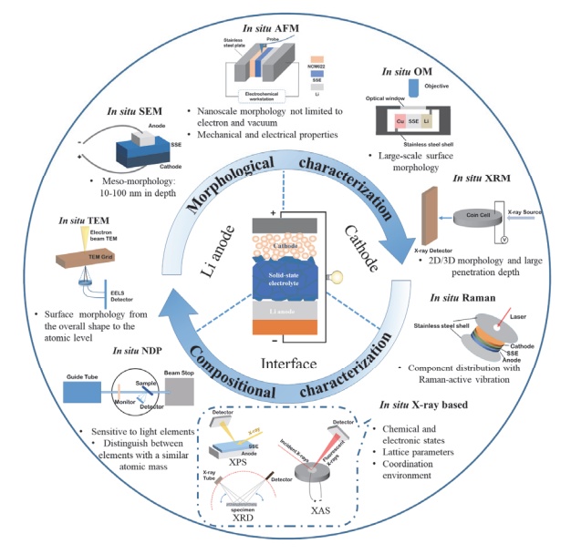 图1固态锂电池电极过程的原位表征技术示意图
