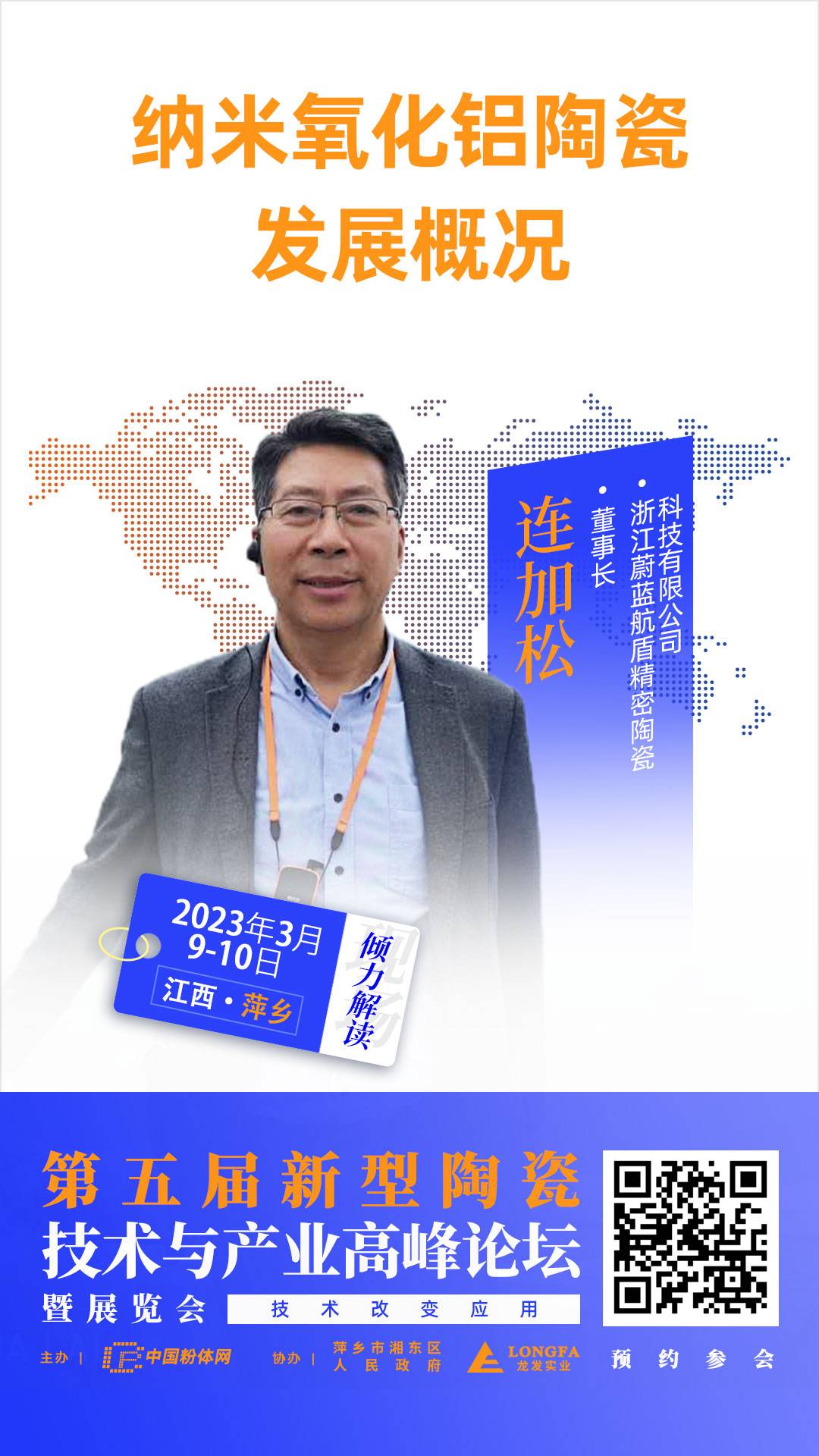 纳米氧化铝陶瓷具有比普通陶瓷更为优异的性能,有更广泛的应用前景。那么,它在制备工艺上与普通氧化铝陶瓷有何不同?除了粒度需要达到纳米级,它对原料粉体有何其它特殊要求?2023年3月9-10日,中国粉体网将在江西萍乡举办“2022第五届新型陶瓷技术与产业高峰论坛”,我们有幸邀请到浙江蔚蓝航盾精密陶瓷科技有限公司董事长连加松先生作题为《纳米氧化铝陶瓷发展概况》的报告,连总将从多个方面对纳米氧化铝陶瓷发展过程中的关键问题进行详细介绍。多年来,蔚蓝精瓷致力于高品质氧化铝、氧化锆、氮化铝和氮化硅等先进陶瓷制品的开发与销售,拥有陶瓷基板、结构陶瓷和功能陶瓷等精密陶瓷制造的核心技术,在纳米氧化铝陶瓷方面有深厚的技术积淀。